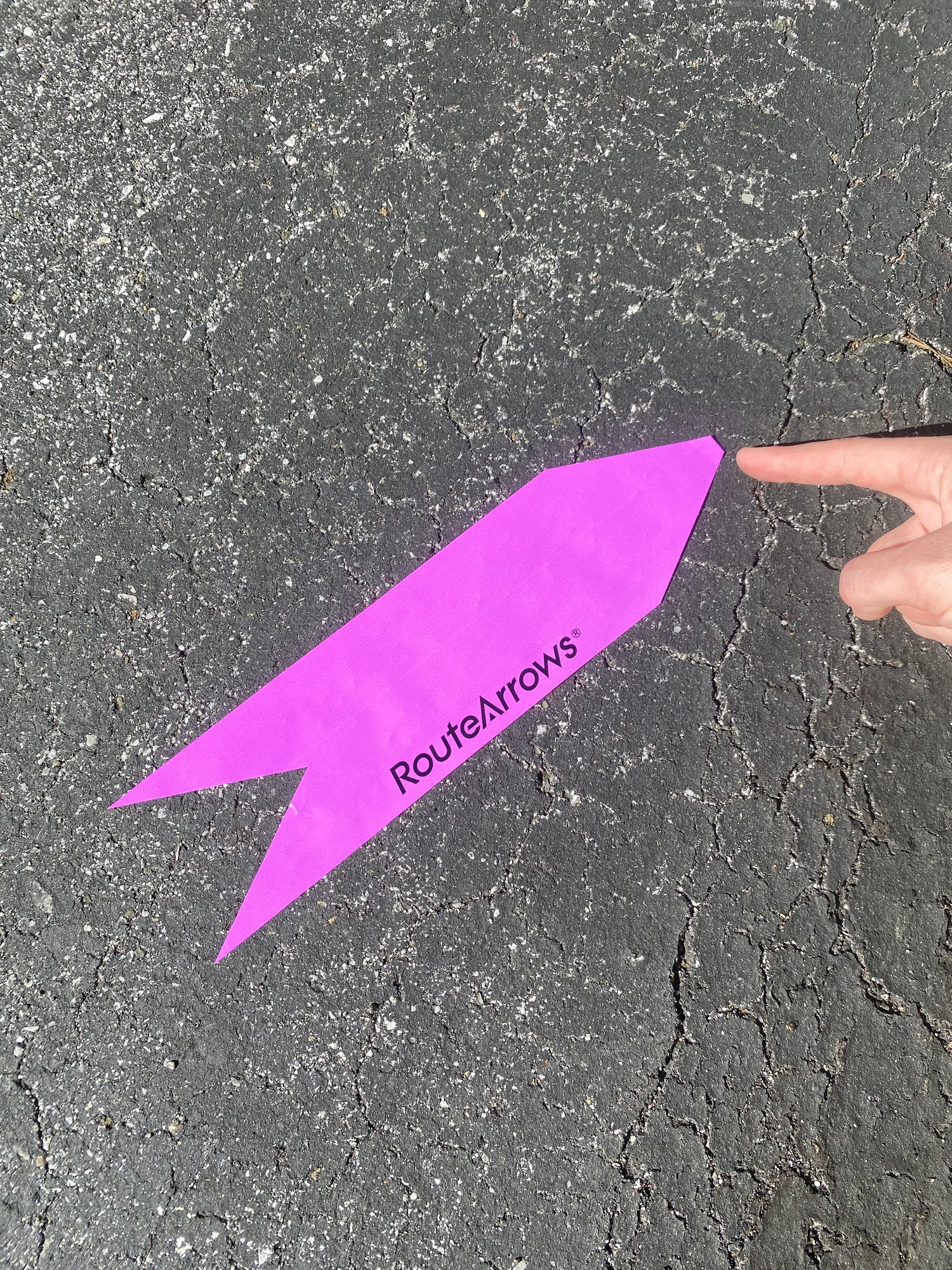 Quickly peel and stick each RouteArrow to the pavement before, at and after every turn. Easy to remove if needed.