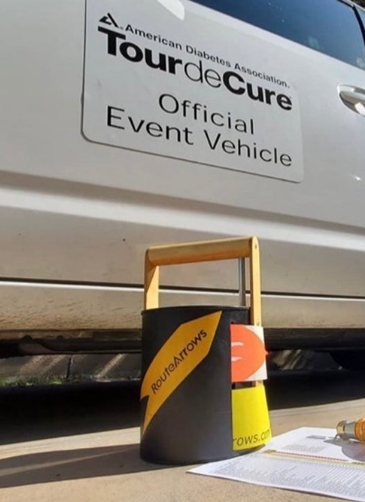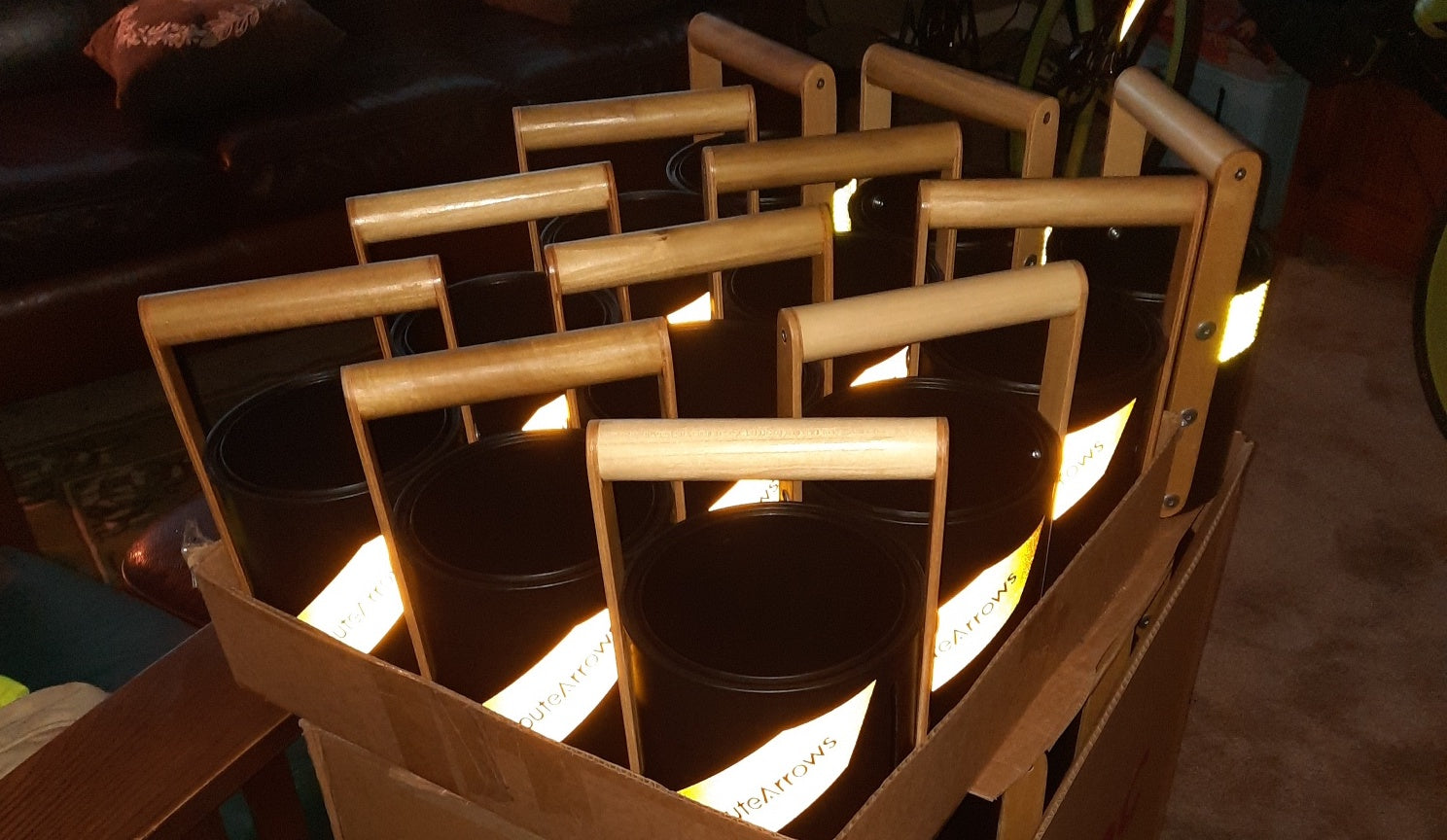 Our handmade RouteCans are an easy-to-use dispenser that efficiently carry 1 or 2 Rolls of RouteArrows!