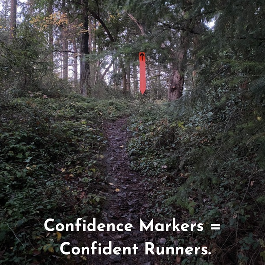 Third, we have small and mighty Trail Signs! Great for day or nighttime trail events. Our compact, heavy duty, 8x8 signs are available in both black and white (for max contrast) with either Reflective or hi-viz arrow color options.