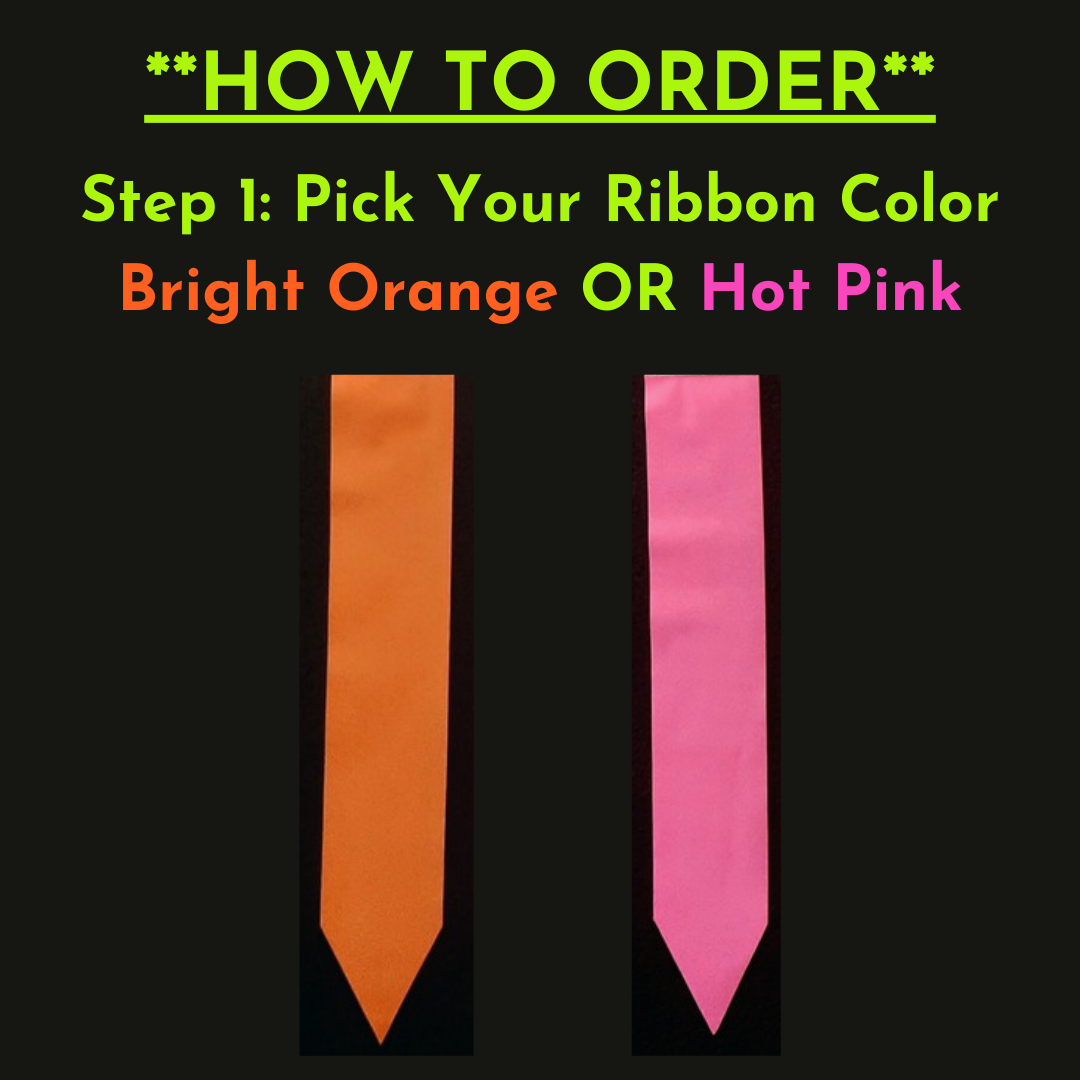 1) Pick Your Ribbon Color - Bright Orange or Hot Pink